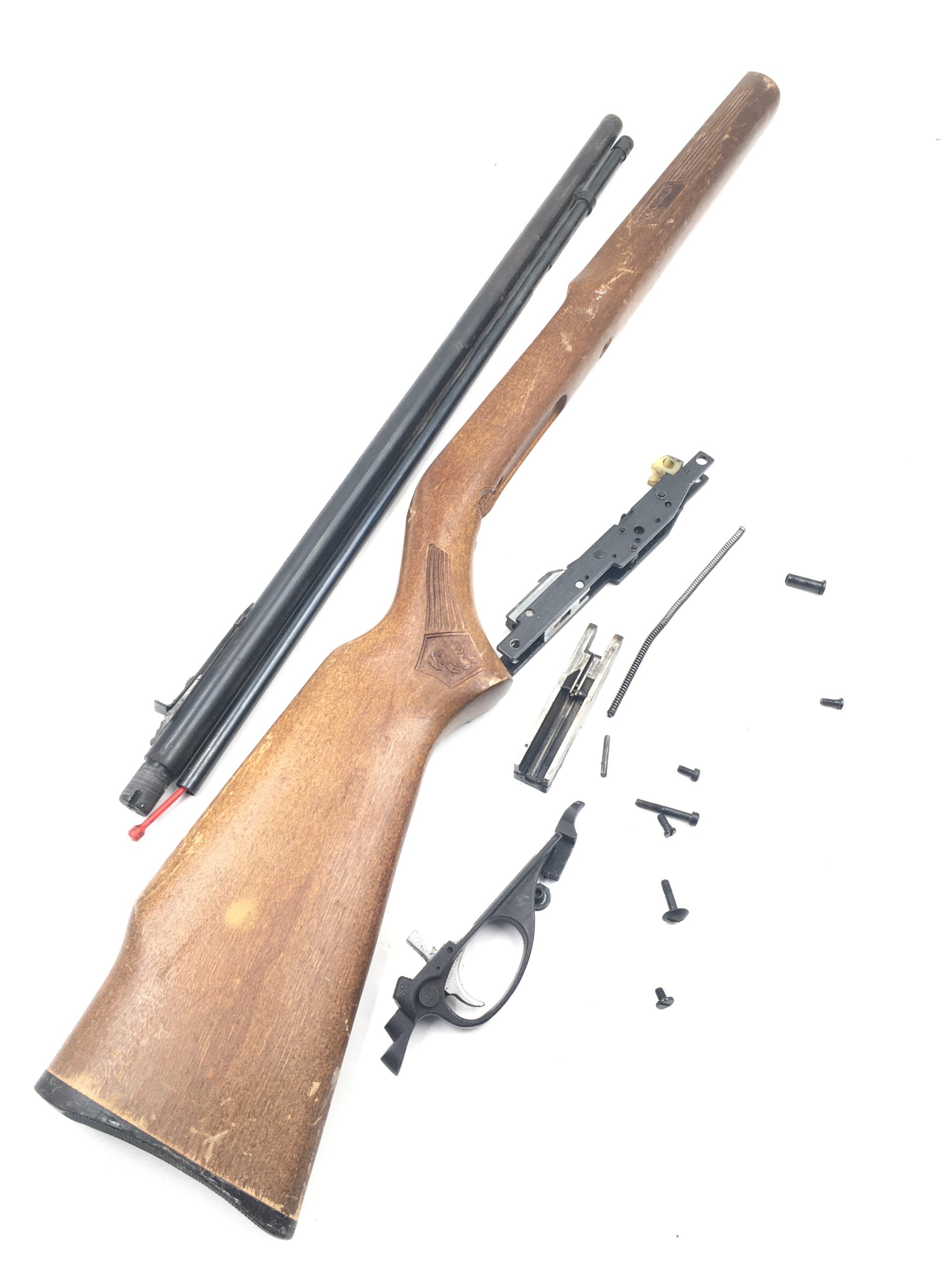 Up for auction is a Glenfield / Marlin Old Model 60 22 lr Rifle Parts: barrel (has some roughness on it), stock, trigger group, bolt, handle, recoil spring, side plate, screws. All the parts pictured come with this kit. This kit could be missing small parts from disassembly. Comes as pictured. Thank you.